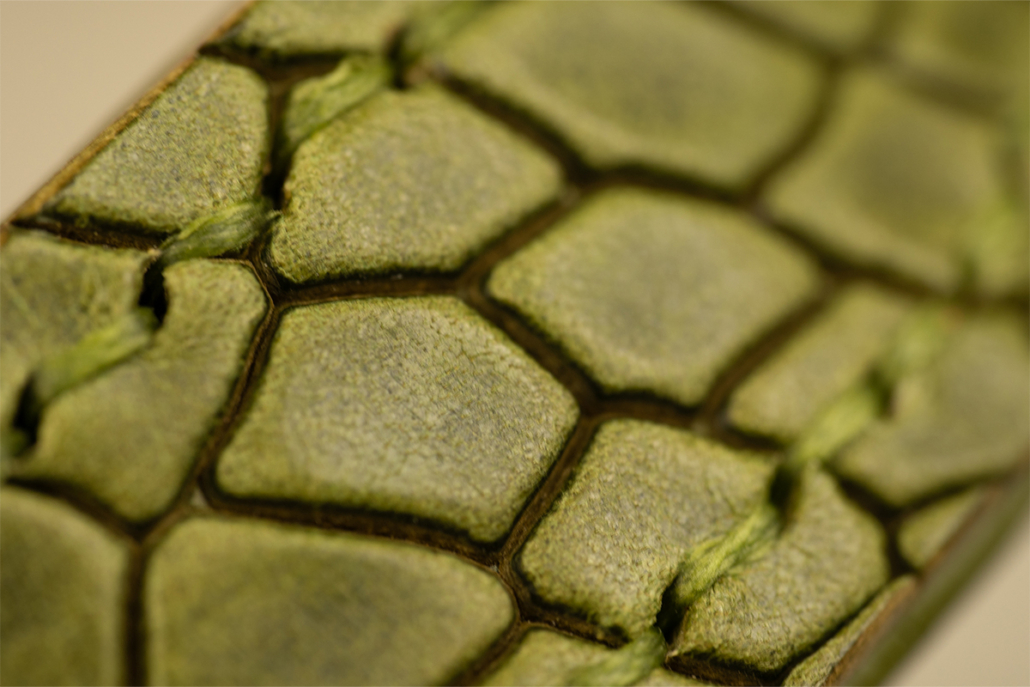 - intensiver Grünton mit reliefartiger Krokoprägung
