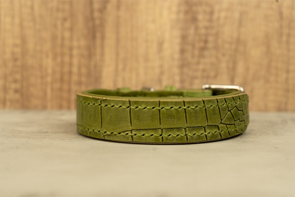 Ein Halsband mit Krokoprägung für Hunde, die gesehen werden wollen – und für Halter, die echte Besonderheiten schätzen.