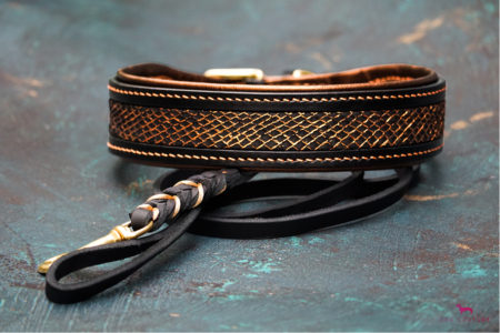 Mit dem Olympus Set geht dein Hund nicht einfach Gassi – er schreitet wie ein echter Halbgott durch die Welt! Schwarzes, weiches Leder trifft auf ein Fischleder-Inlay mit schimmernden goldenen Metallic-Akzenten – sowohl beim Halsband als auch bei der passenden Leine. Dieses Set ist nicht nur ein Hingucker, sondern auch eine Hommage an die Eleganz des Olymps – perfekt für Mensch-Hund-Teams, die wissen, dass sie besonders sind.