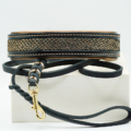 • Halsband + Leine, perfekt abgestimmt: Das schwarze Leder und die goldenen Akzente sorgen für einen Look, der Hera sprachlos machen würde.