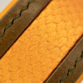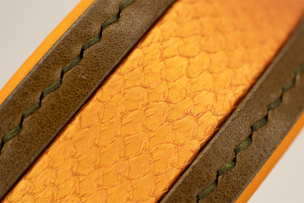 Applikation: edles Fischleder, metallisch schimmernd in Orange-Gold