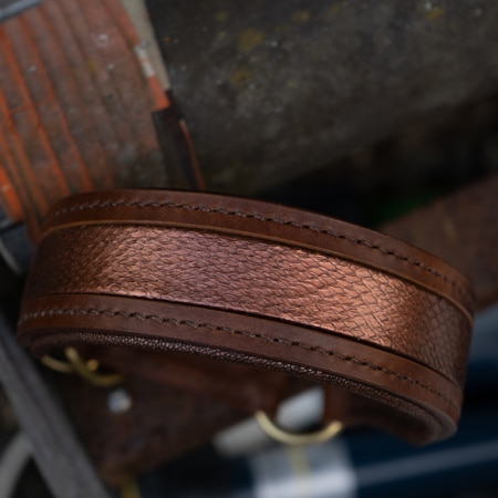 Die kontrastreiche Ziernaht in leuchtendem Koralle verleiht dem Design noch mehr Tiefe, während die goldenen Beschläge für einen Hauch von Luxus sorgen. Und weil Schönheit nicht nur von außen kommt, bietet die weiche Polsterung höchsten Tragekomfort – perfekt für stilbewusste Vierbeiner mit Charakter!